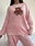 El conjunto incluye buzo manga larga y pantalón, con calce cómodo y amplio que se adapta fácilmente al cuerpo.