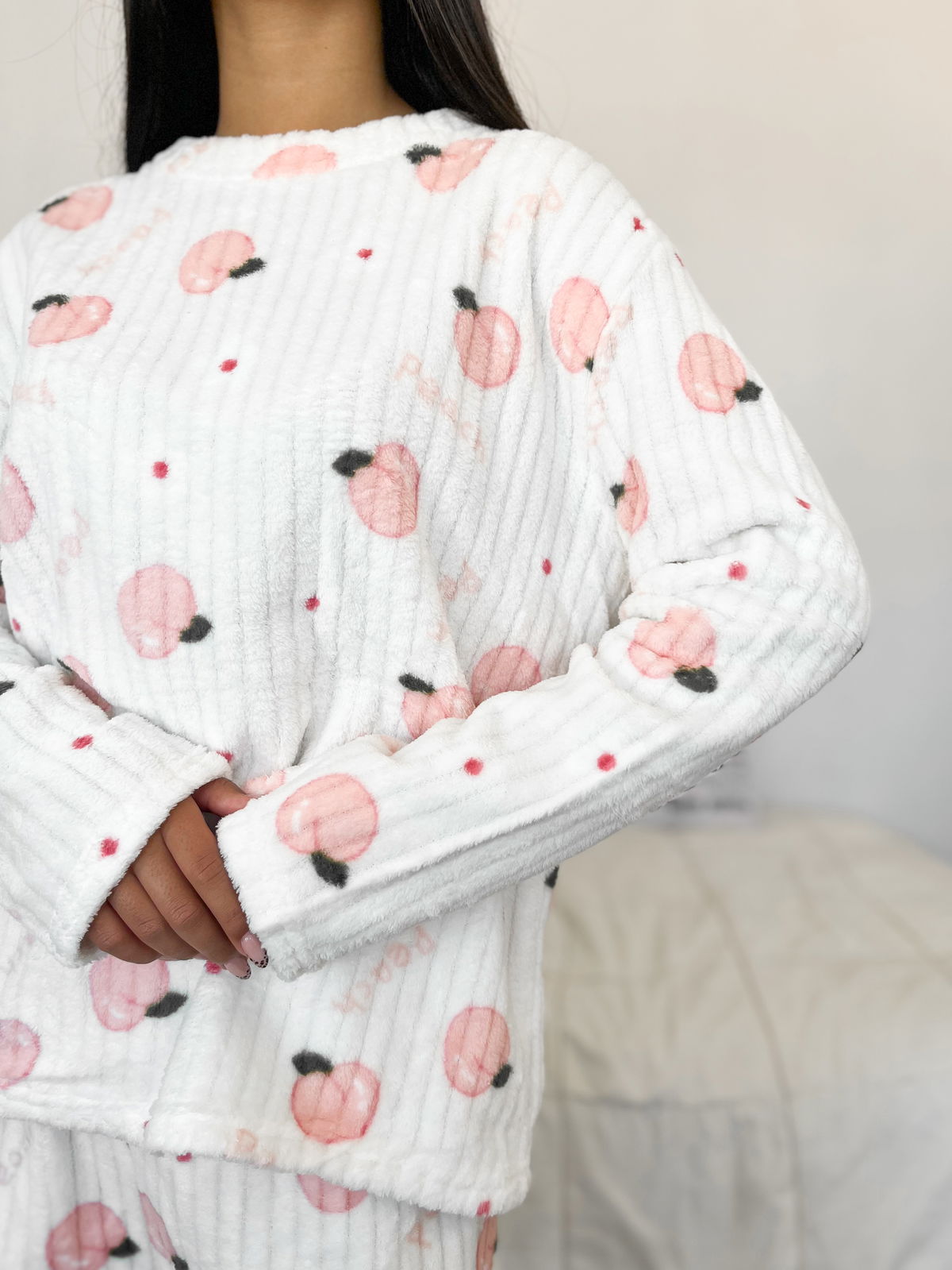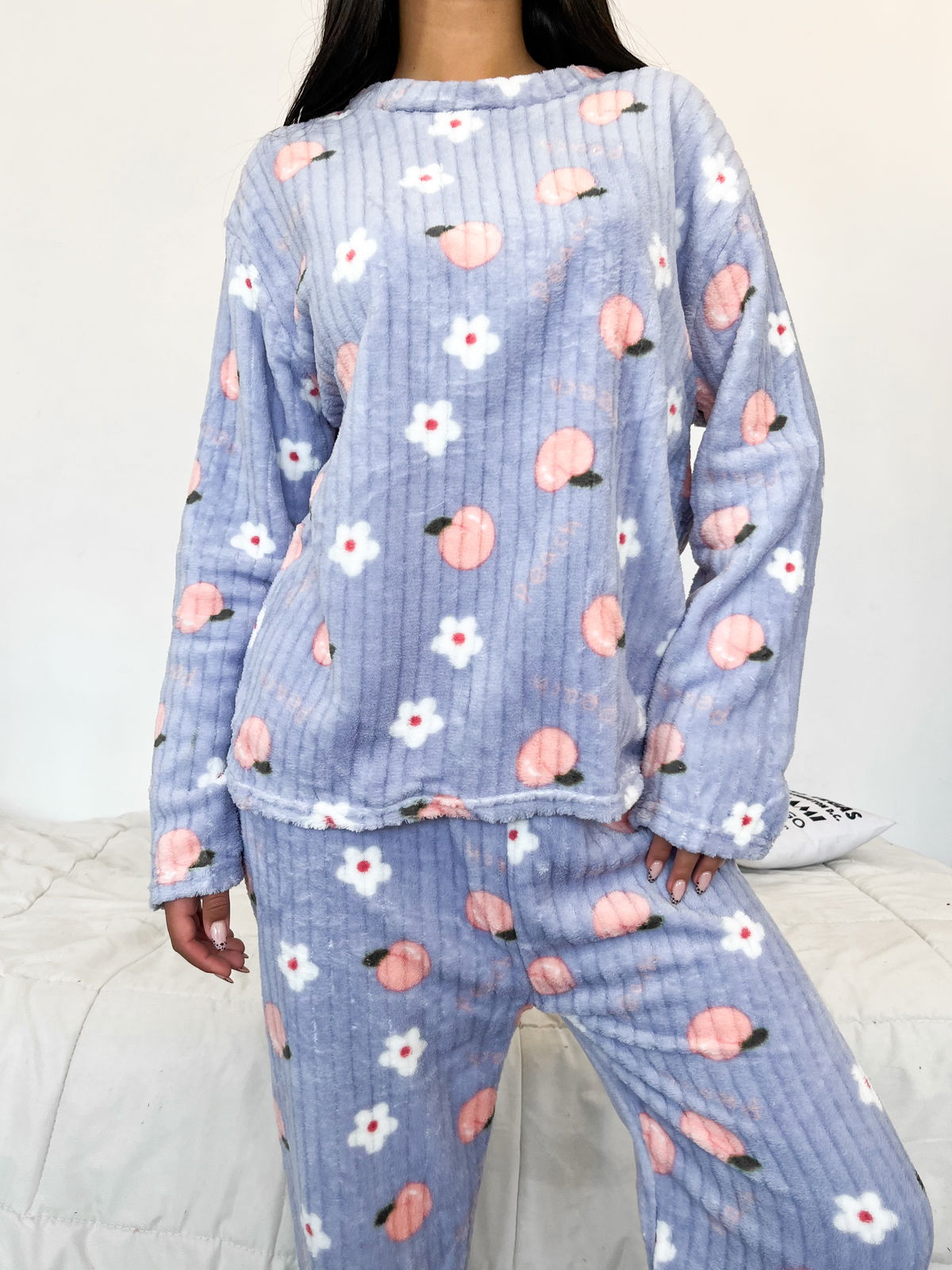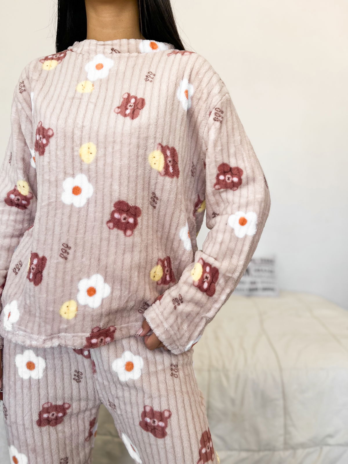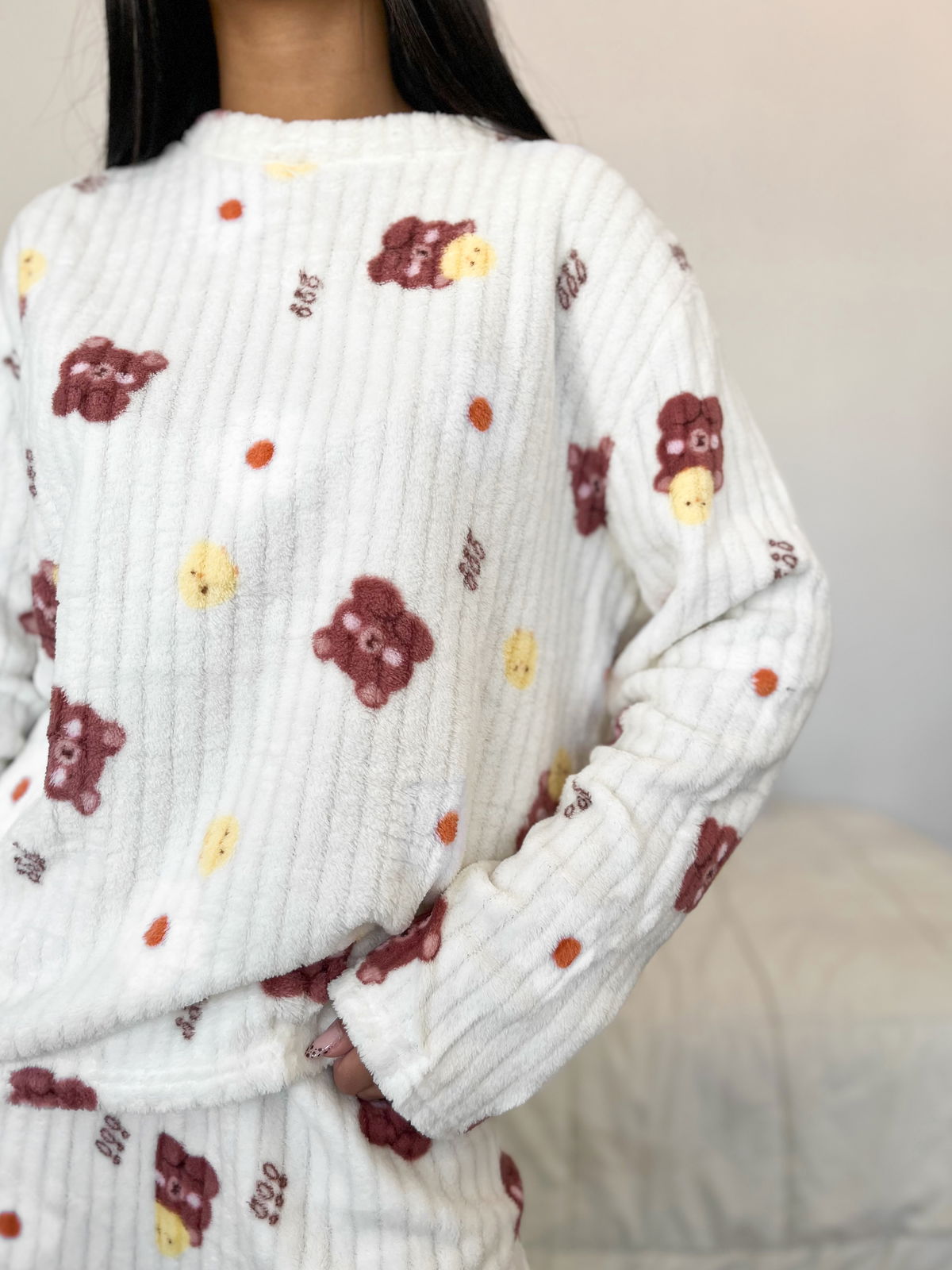 Ideal para potenciar las ventas en la temporada de frío, este conjunto de pijama está confeccionado en polar acanalado, una tela abrigada, suave y de excelente confort.