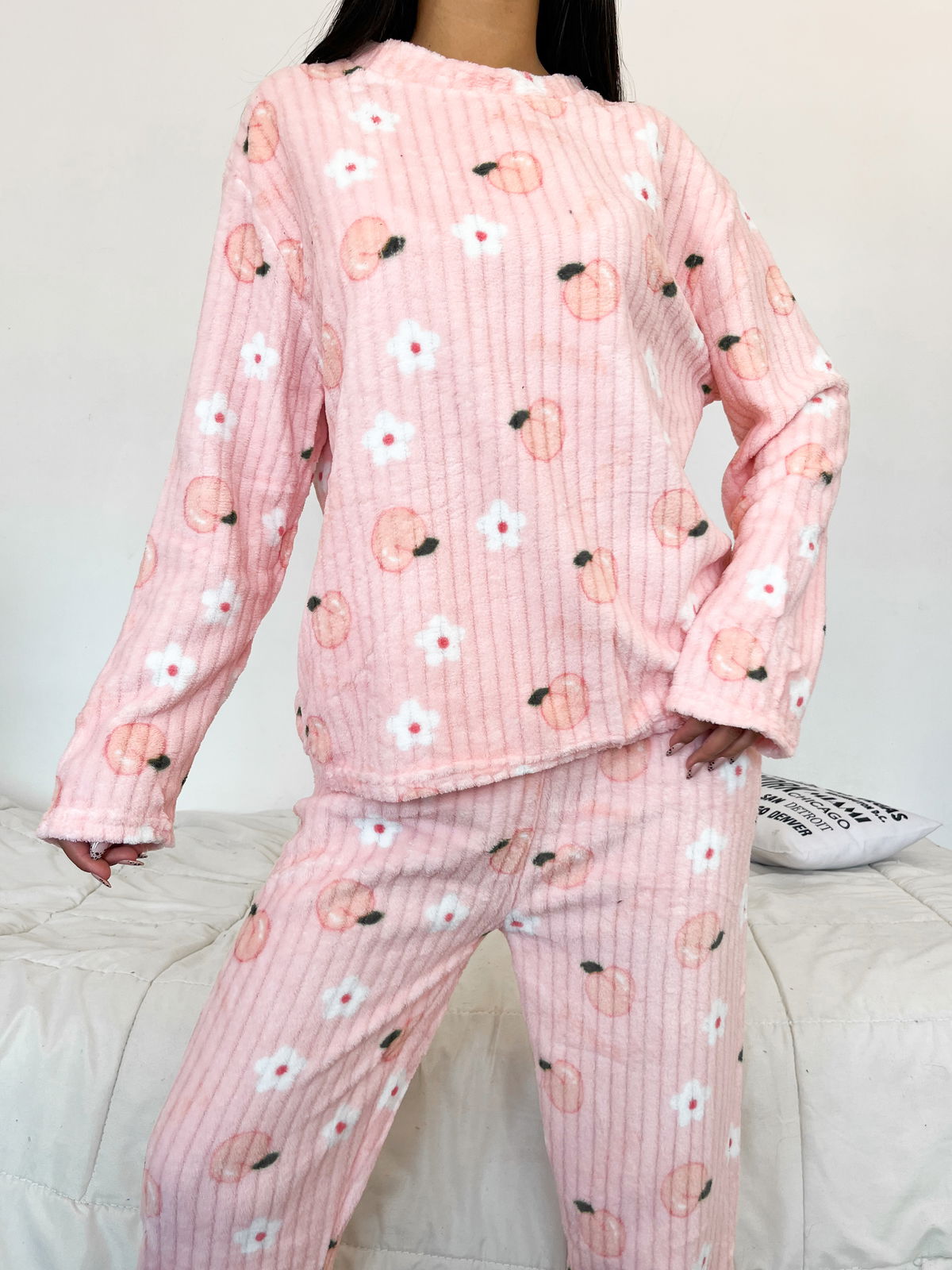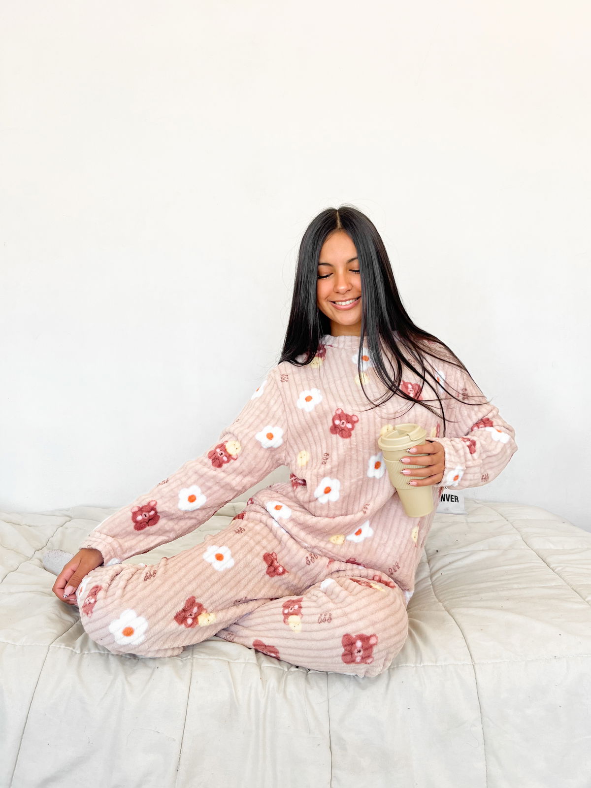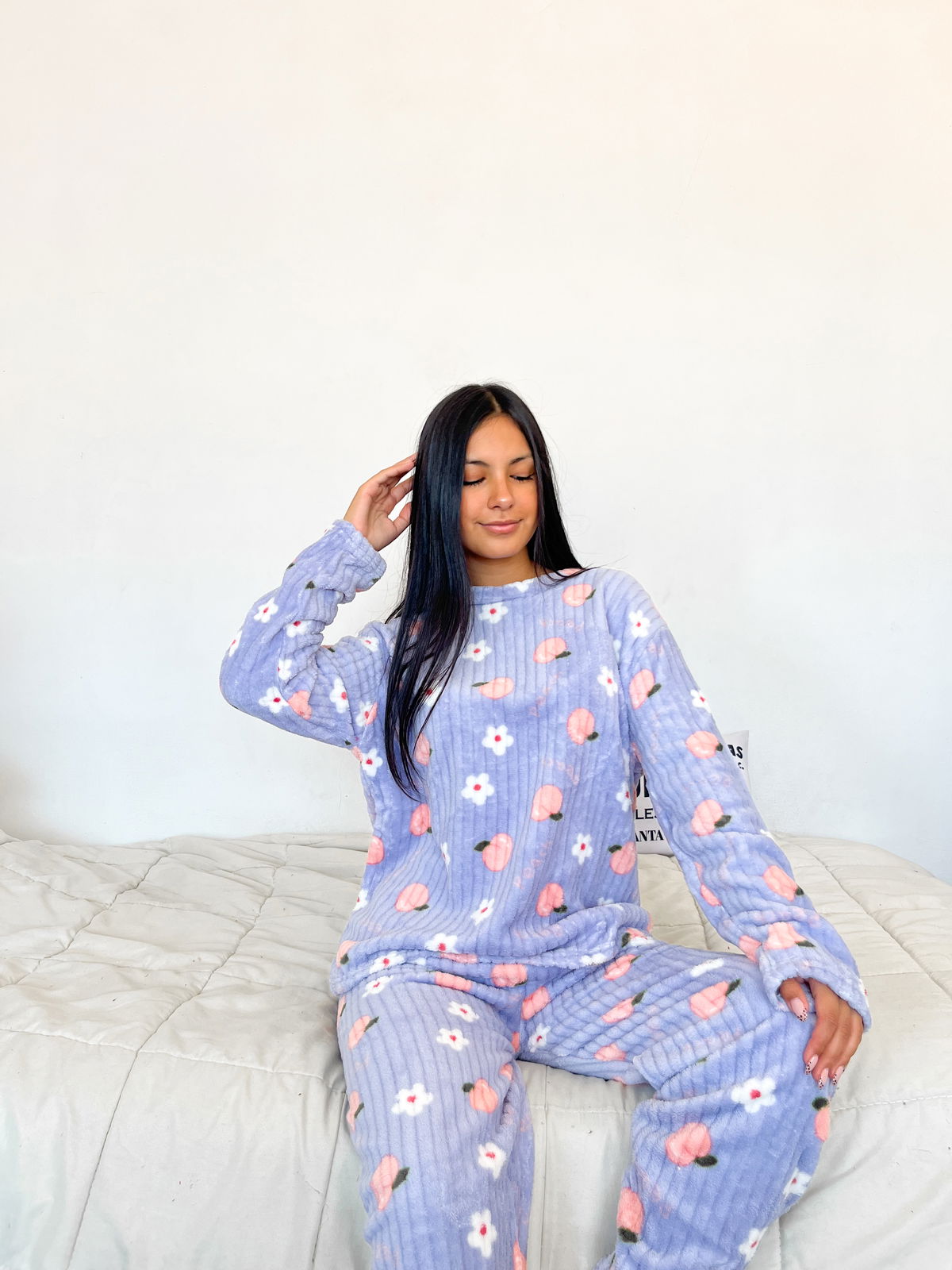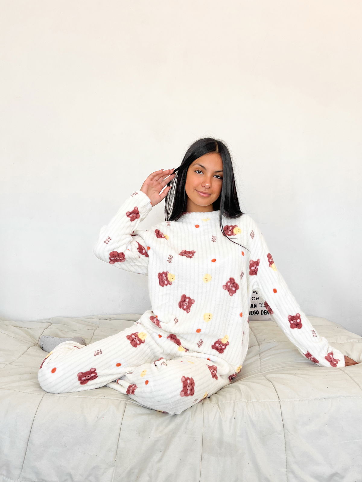 Ideal para potenciar las ventas en la temporada de frío, este conjunto de pijama está confeccionado en polar acanalado, una tela abrigada, suave y de excelente confort.