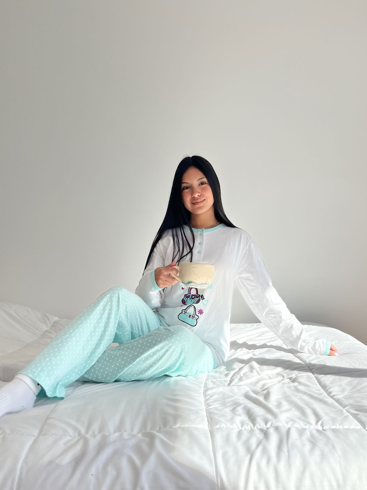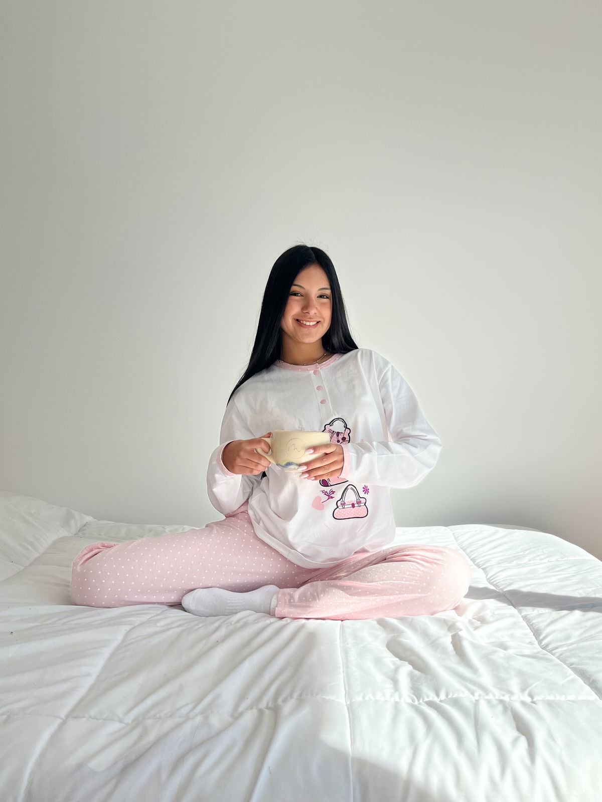 Pensado para ofrecer comodidad y frescura durante todo el año, este conjunto de pijama está confeccionado en algodón 100%, una tela suave, respirable y agradable al contacto con la piel.